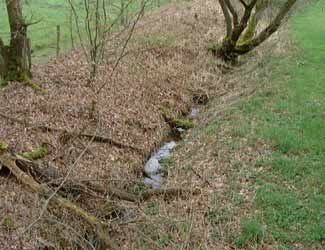 Als Überbleibsel der alten Zeche Harmonie fließt heute noch Wasser durch die Rösche, die das Stollenmundloch mit dem Pleßbach verband.