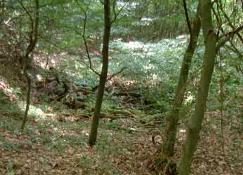 Im Vosskuhlenbusch in Bochum-Schrick befinden sich einige teilweise zugewachsene Pingen aus früher bergbaulicher Tätigkeit.
