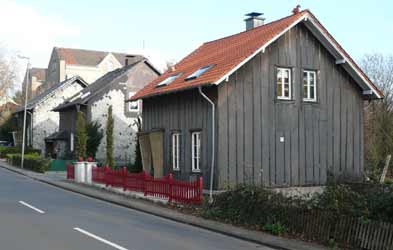 An den oberen beiden Häusern ist noch die Schieferverkleidung erkennbar, mit der die Häuser seinerzeit gebaut wurden.