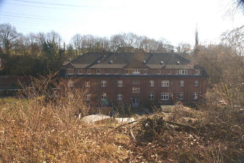 Das ehemalige Verwaltungsgebäude befindet sich am oberen Ende der Straße "Am Steinkohlenplatz" in Essen-Burgaltendorf.